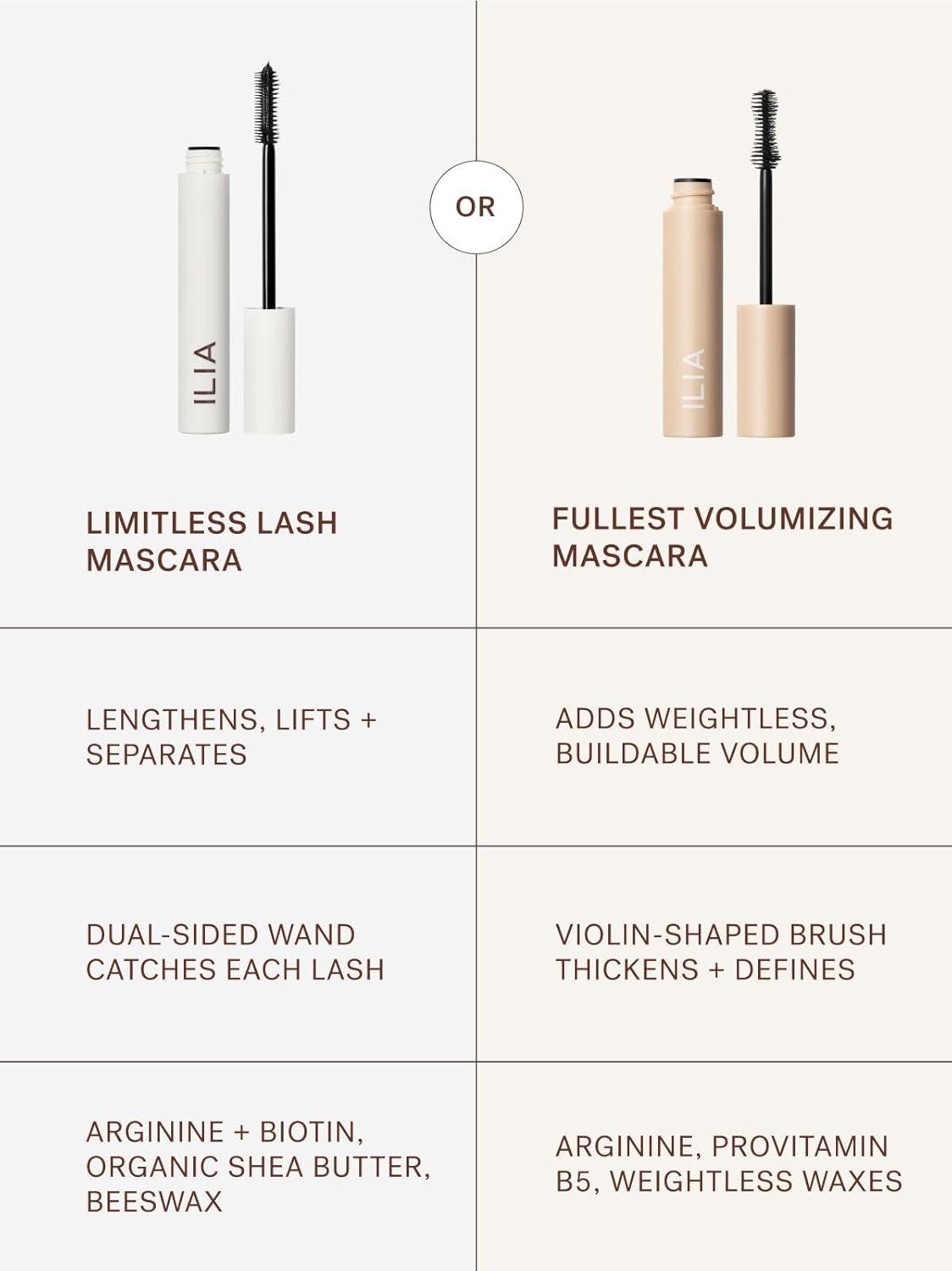 ILIA – Limitless Lash Mascara | Lightweight, Nourishing, Lengthening, Lifting | Flake + Smudge-Resistant | Non-Toxic, Cruelty-Free, Ophthalmologist-Tested, Safe For Sensitive Eyes (Soft Black)(Brown)